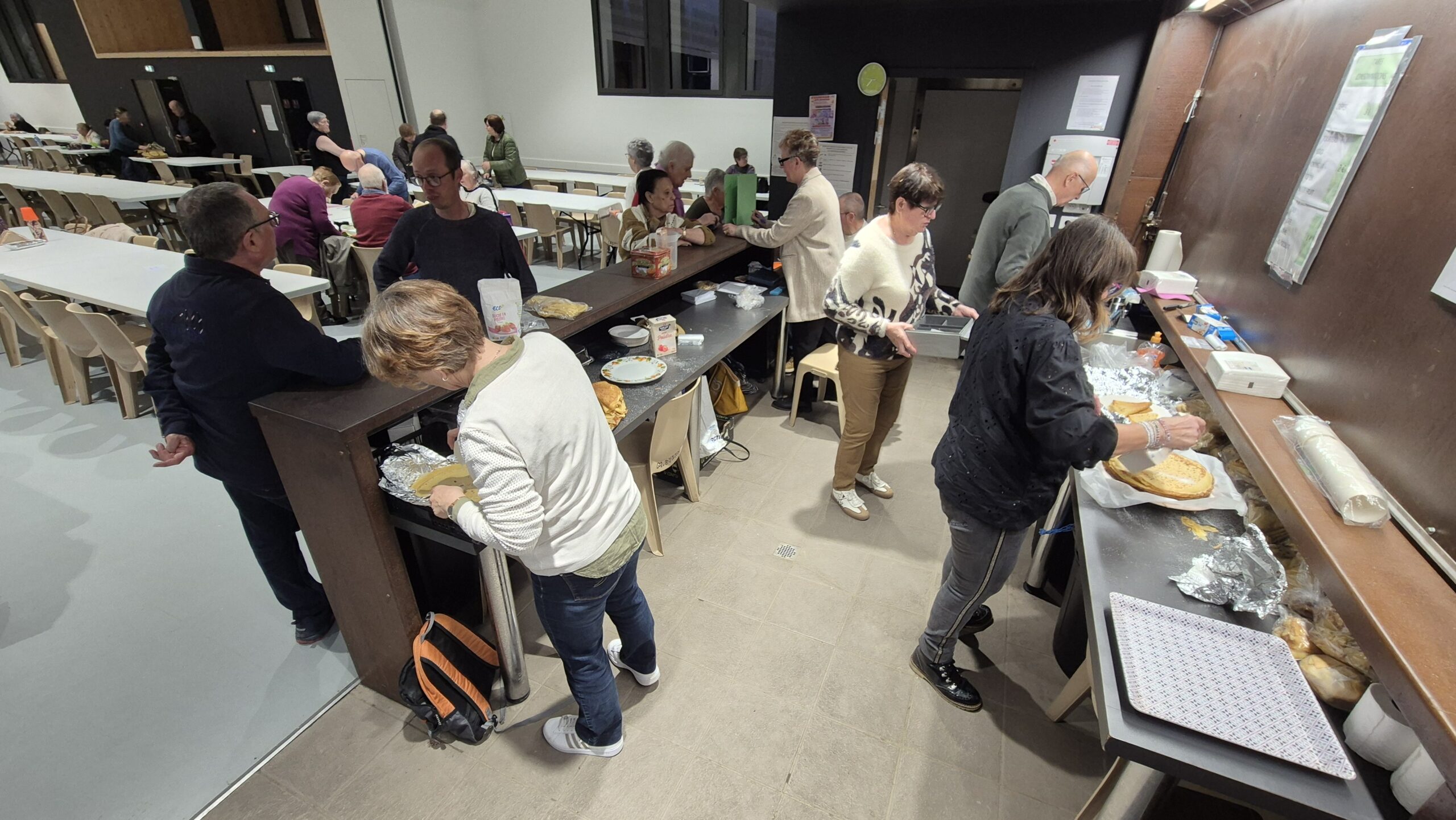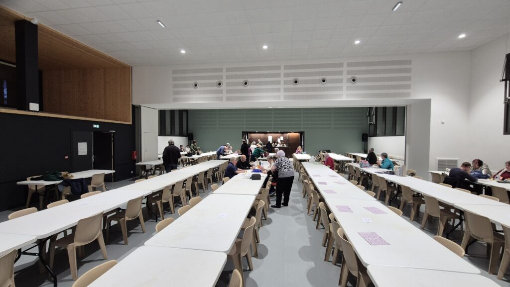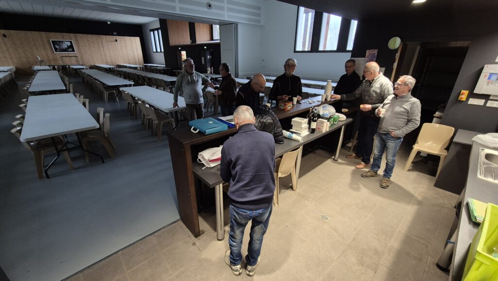 Les bénévoles étaient à pied d’œuvre dès 9H00 pour installer la salle, préparer les tables, organiser les lots, vérifier la sonorisation (on croise les doigts !) et mettre en place la buvette pâtisserie.